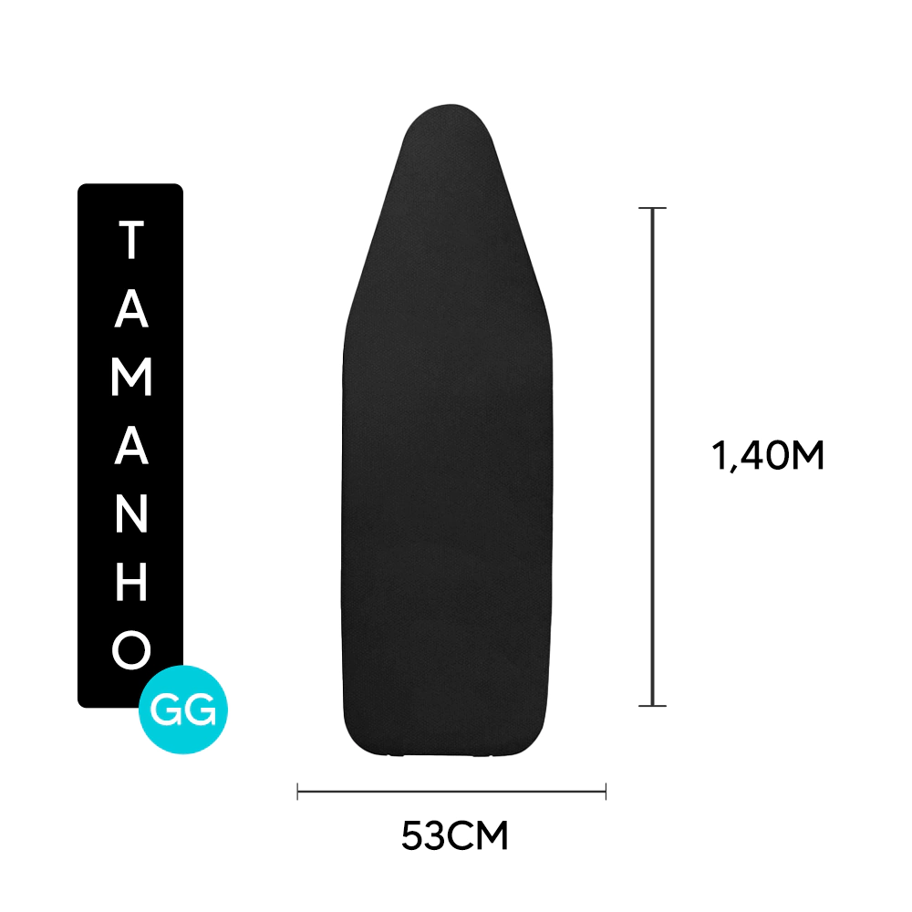 O forro apresenta superfície aluminizada que reflete o calor e facilita no momento de passar a roupa e a espuma interna armazena umidade e acolchoa o forro.
