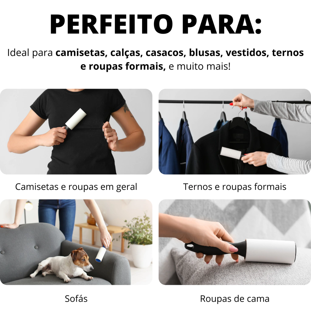 O Rolo Adesivo Útil Clean possui fita adesiva de alta performance e cabo que pode ser reutilizado com refil. Este rolo garante fácil uso, sem danificar os tecidos! É ótimo para melhorar o aspecto de suas roupas antes de sair de casa ou remover pelos de animais, como gatos e cães.