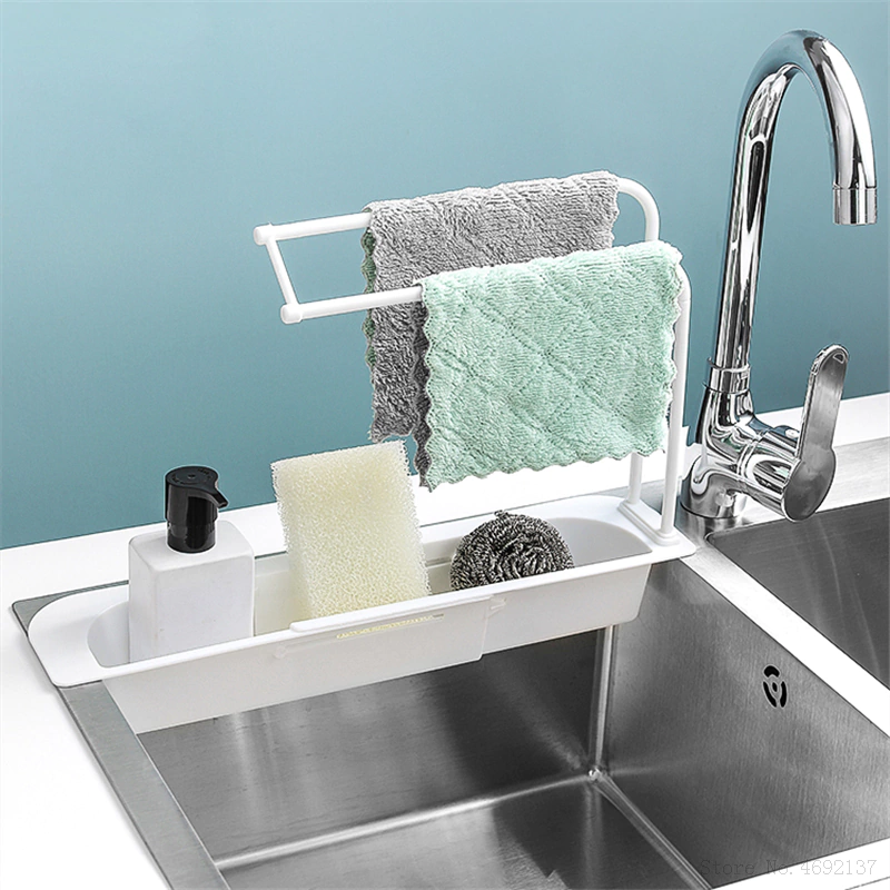 Com sistema de ajuste de tamanho, o suporte para pia pode ser utilizado em diferentes formatos e tamanhos de cuba da sua pia. Suporte para panos com encaixe, permite que o pano seque. Além disso, ele otimiza o espaço da cozinha deixando-a bem mais organizada.